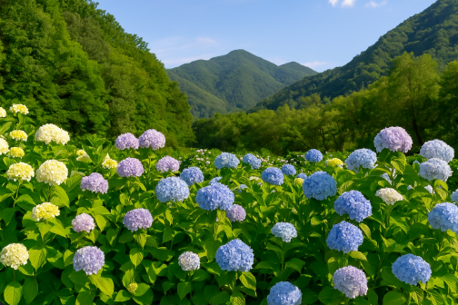 - 특징: 고원 목초지와 고산지대 분위기가 어우러진 수국길이다.