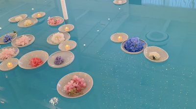 - 1층 중앙에는 작은 연못이 자리 잡고 있는데, 물 위에는 접시와 초, 꽃이 띄워져 있어 마치 꿈을 걷는 듯한 몽환적인 분위기를 자아냅니다. 이곳은 사진을 찍기에도, 조용히 머물기에도 좋은 ‘연못 옆 좌석’으로 특히 인기예요.