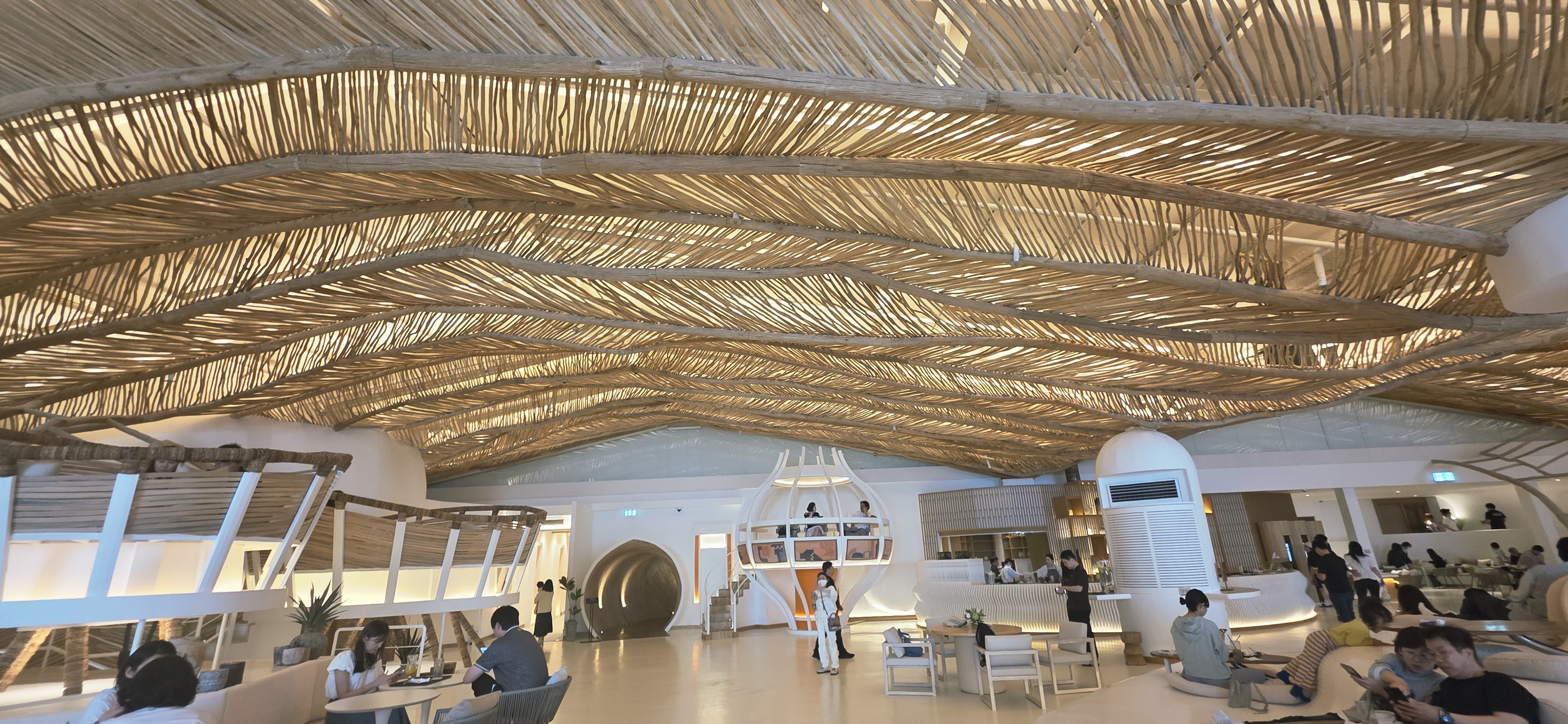실내라고 믿기 어려울 만큼 개방감이 크고, 전반적인 무드는 동남아의 리조트를 떠오르게 해요.