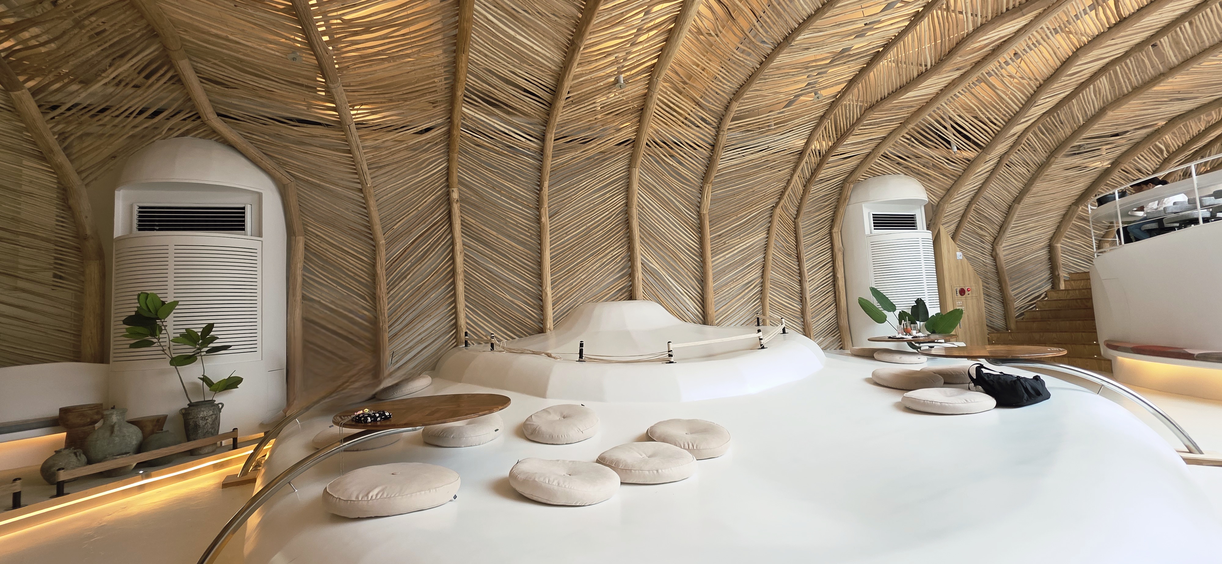 실내라고 믿기 어려울 만큼 개방감이 크고, 전반적인 무드는 동남아의 리조트를 떠오르게 해요.