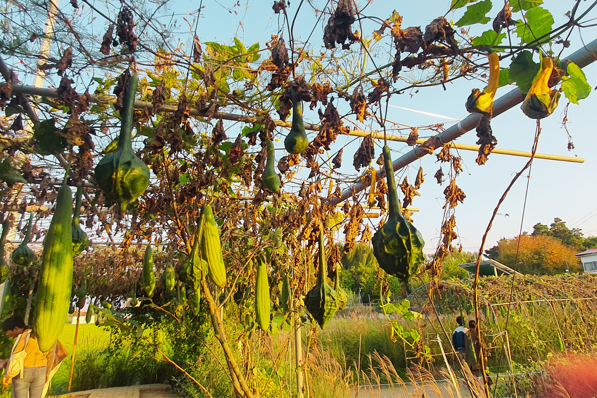 초록빛 수세미가 주렁주렁 매달린 터널로 청량감을 만끽할 수 있습니다.