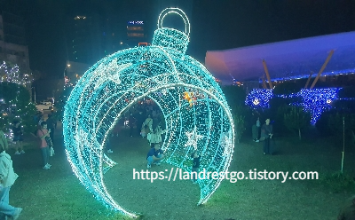 거리의 가로수를 걷다 보니 화려한 라이팅 장식이 가득한 곳이 눈에 들어왔습니다.호기심에 이끌려 얼른 가보았더니, 그 스케일이 정말 엄청났습니다! 인파에 밀려 겨우 볼 수 있었지만, 그 장관은 정말 감동적이었습니다.