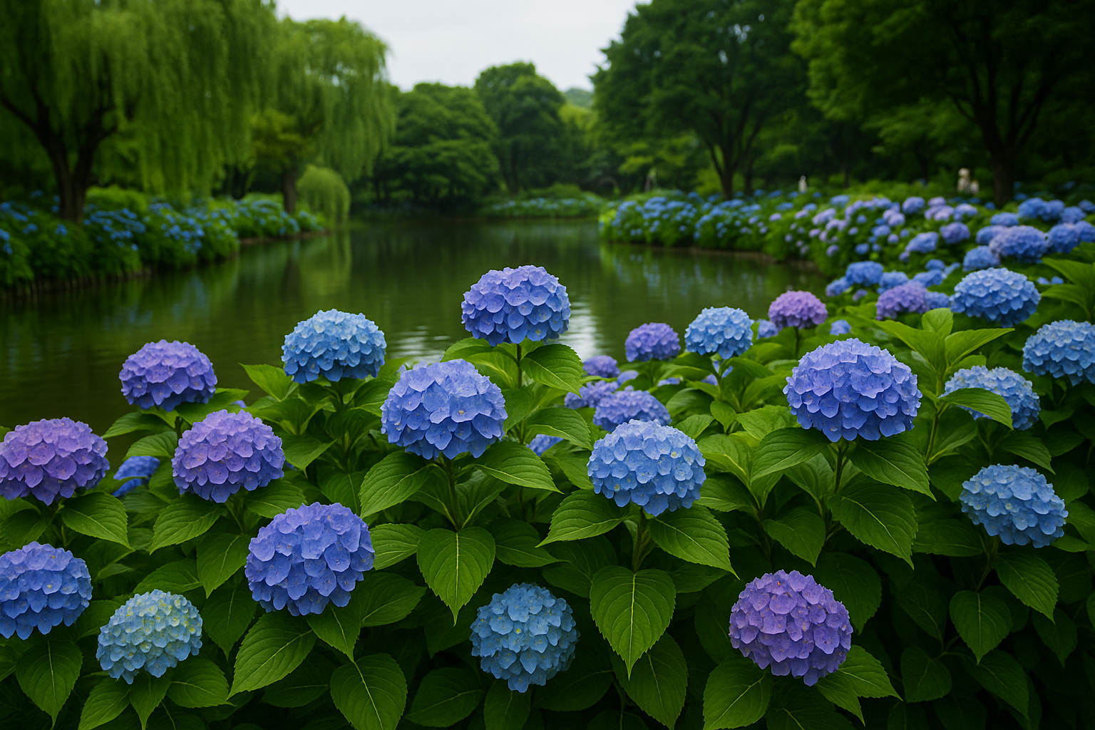 - 특징 : 수국은 토양의 산도(pH)에 따라 꽃 색이 변합니다. 산성 → 파란 수국 / 알칼리성 → 분홍 수국