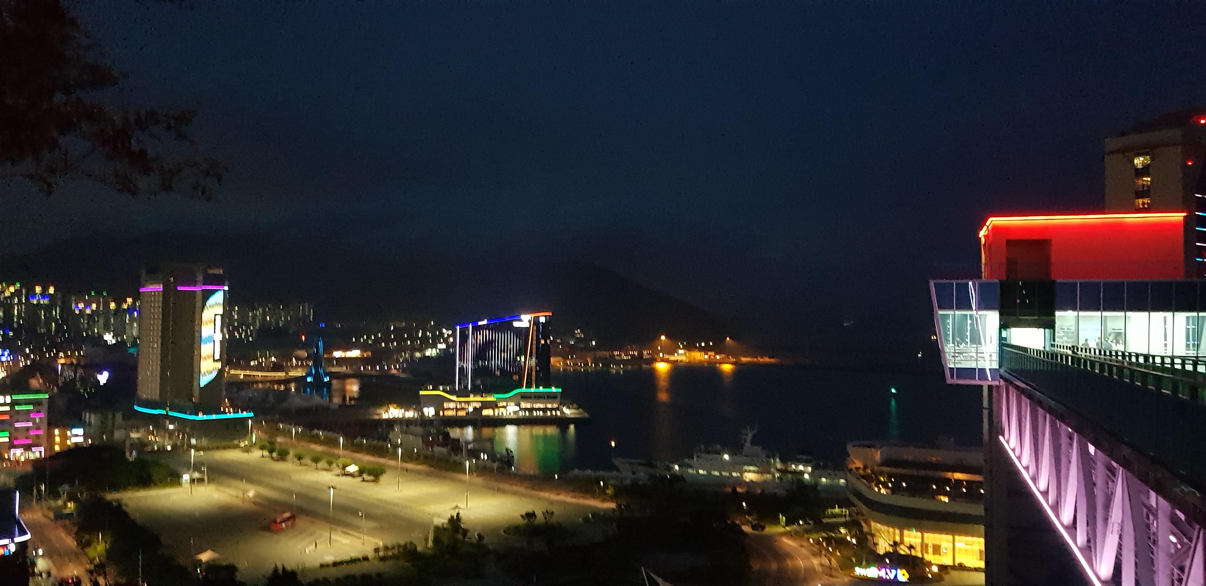 낮보다 반짝이는 드넓은 밤바다와 야경,