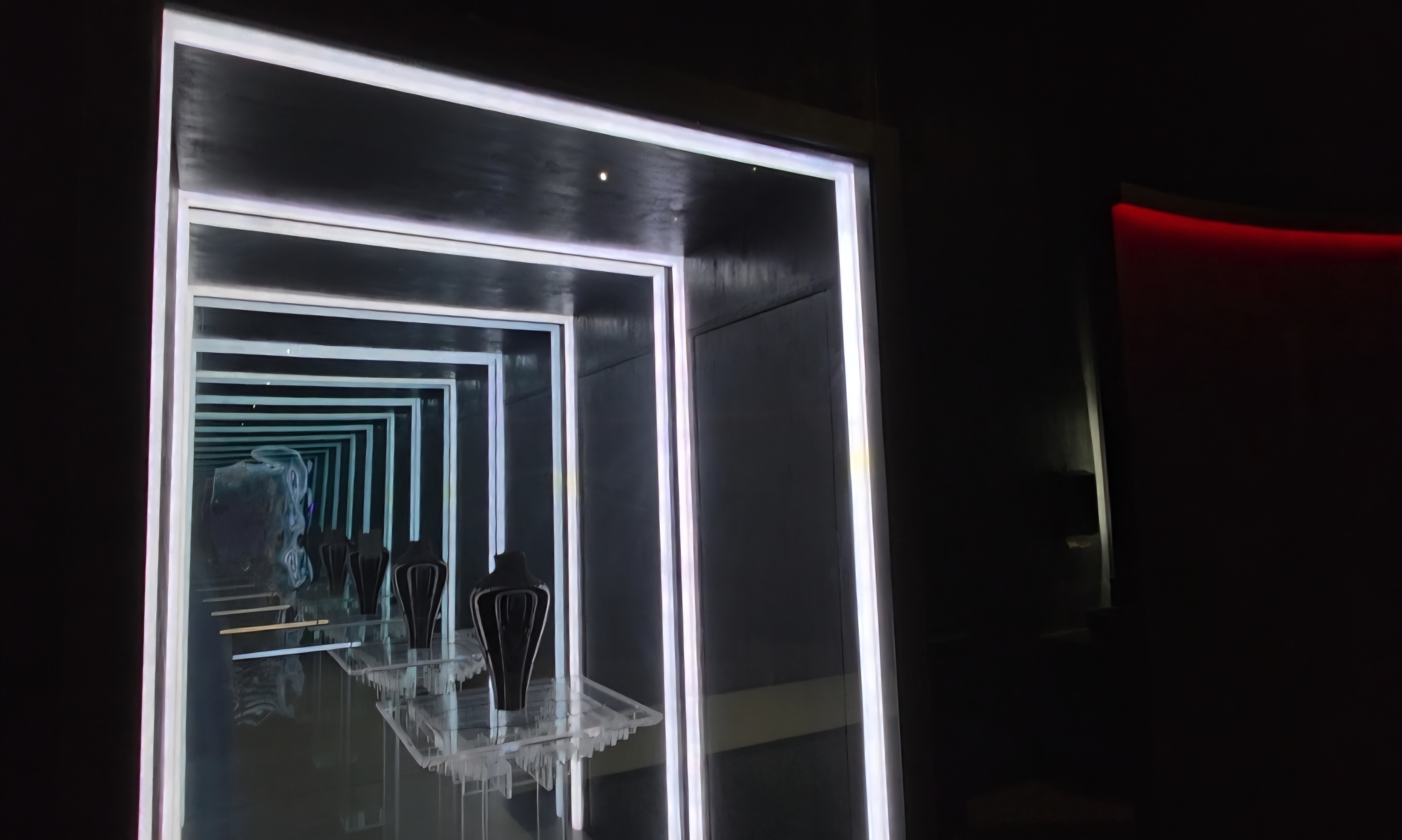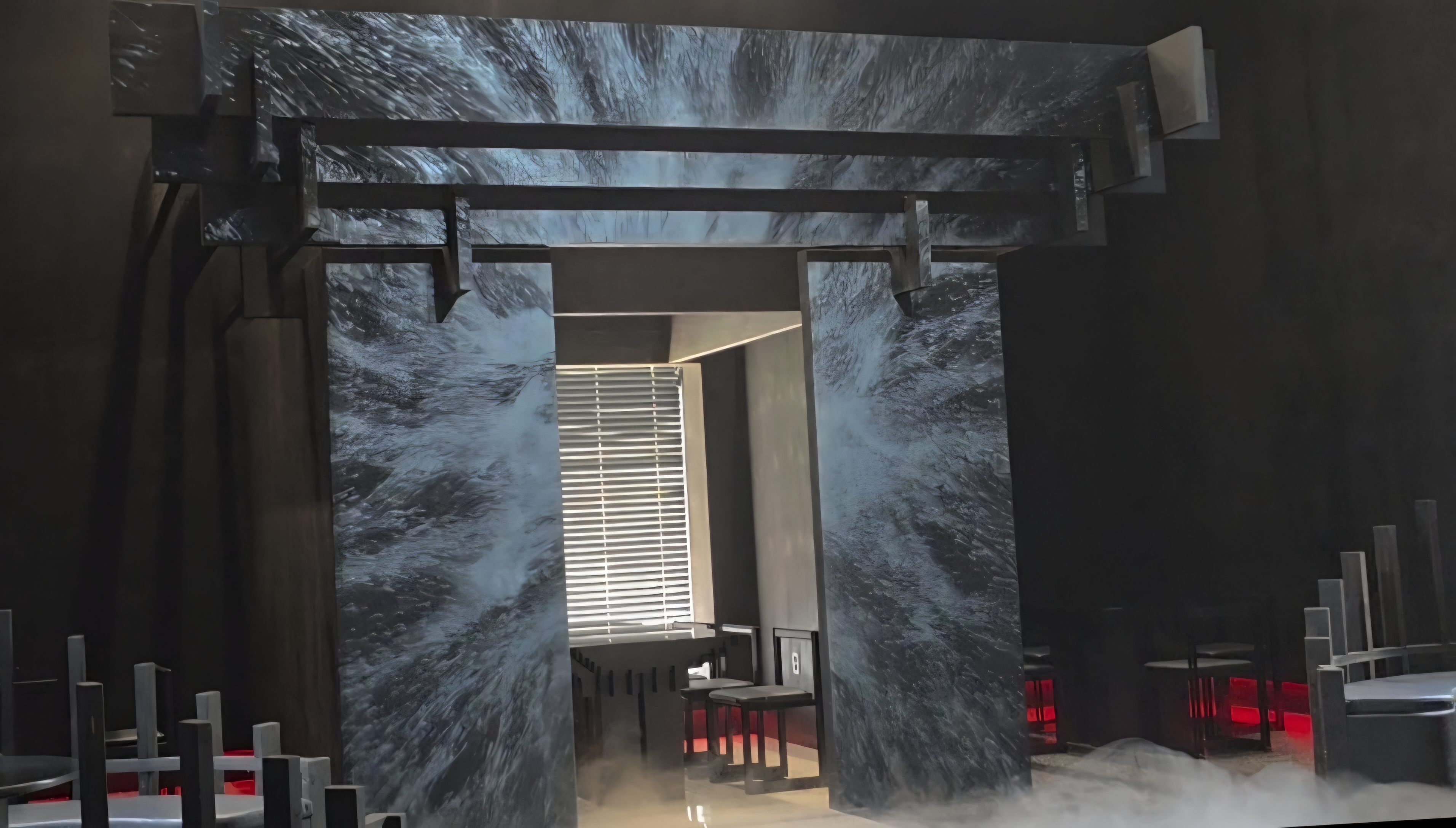 - 연관성: 카페 섹션 B동의 레이저와 안개가 만들어내는 몽환적인 분위기는 터렐의 빛을 이용한 설치 작품들과 유사한 경험을 선사합니다. 빛의 변화, 공간의 모호함, 그리고 몰입감을 통해 방문객의 감각을 확장시키는 점이 닮았습니다.
