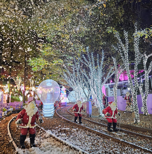인공눈을 뿌리기 때문에 다른 곳에느낄 수 없는 특별한 겨울의 낭만을 즐길 수 있습니다. 다양한 조명 경관과