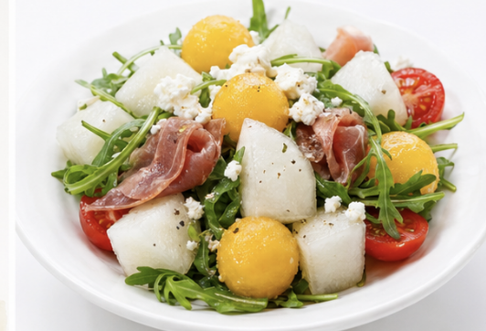 🔸 상큼 참외 샐러드 (2인분): 참외 1개 슬라이스 + 오이·토마토 + 레몬즙·올리브유 드레싱. 5분 완성!